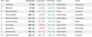 1.Amazon CEO’su Jeff Bezos – 116 milyar dolar