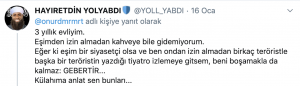 Twitter’da @onurdmrmrt isimli bir kullanıcı eşi bir yere gideceği zaman kendisinden izin almadığını yazdığı bir tweet paylaştı ve olan oldu…